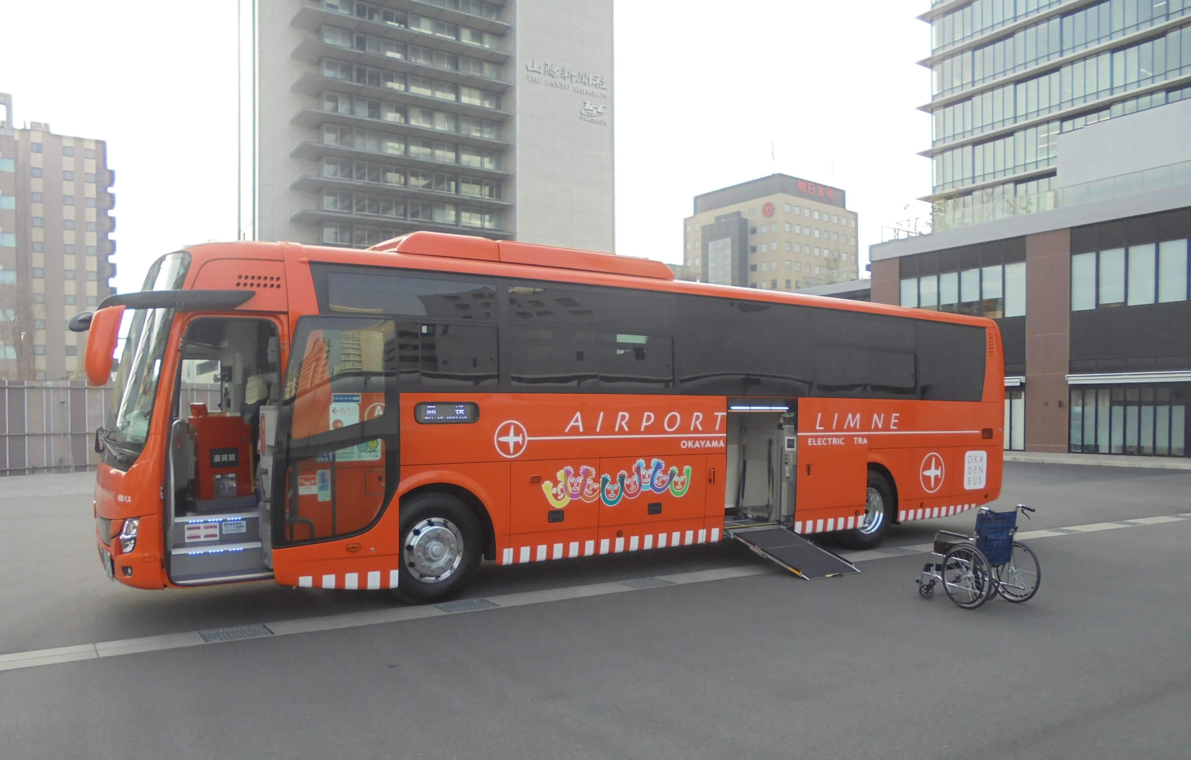 岡山駅と空港の間で車いすのままご乗車いただけるリムジンバスを運行しています。