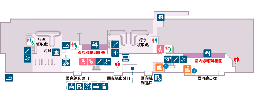 | 8:30~17:00 1樓是國内航班到站大廳。 如果在本館遇到不明之處,請打館内的內線電話進行咨詢。 此處也提供出借輪椅的服務,請自由利用。 |